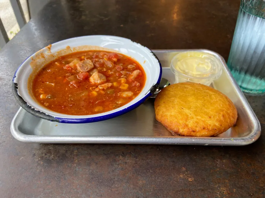Burgoo is a thick stew made from a variety of meats like pork, beef, chicken, and sometimes even game meats like venison or squirrel. It’s combined with vegetables such as potatoes, corn, and okra, simmered slowly until all flavors meld into a hearty, comforting dish.