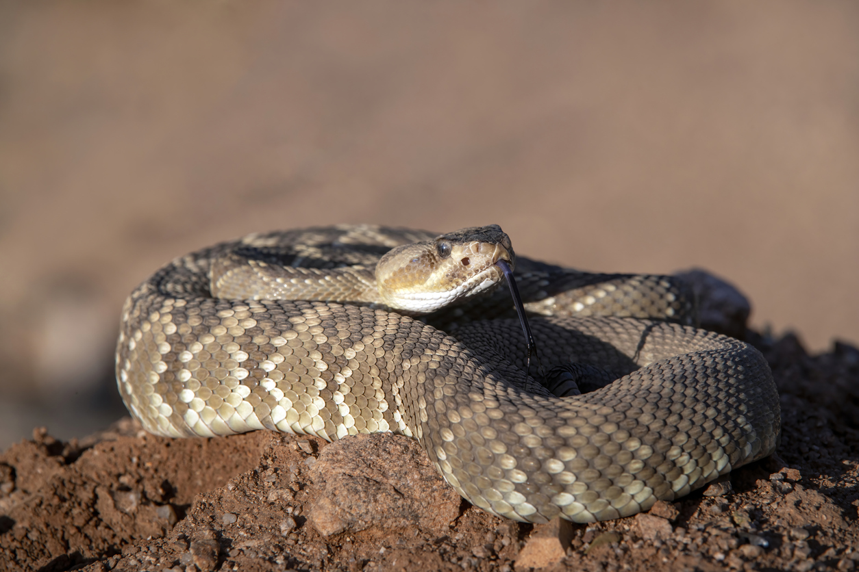 Rattlesnakes are also a threat here. They’re typically gray with a triangle-shaped head. They may alert you of their presence by shaking their tail. Don’t put your hands or feet anywhere you can’t see. After all, a bite from one of these animals can be deadly.