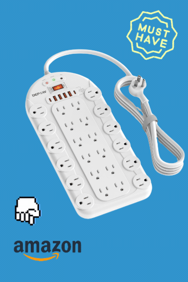 This power strip features 24 grounded outlets, along with 4 USB-A ports and 2 USB-C ports (because we all know Apple and Samsung can’t make things easy on us).