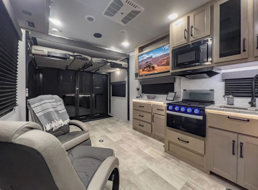 If your ideal getaway involves tearing up trails on an ATV, carving through mountain bike paths, or kayaking down untamed rivers, the toy hauler garage becomes an indispensable asset. It allows you to bring your passions along, turning any destination into your personal playground.