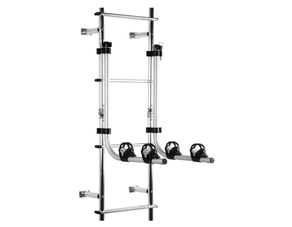 Ladder-mounted racks are a clever use of space but come with limitations. If you have lightweight bikes and don’t mind a bit of lifting, this could be a viable option. Just make sure your RV’s ladder is sturdy enough to handle the extra weight—or prepare for a rude awakening.
