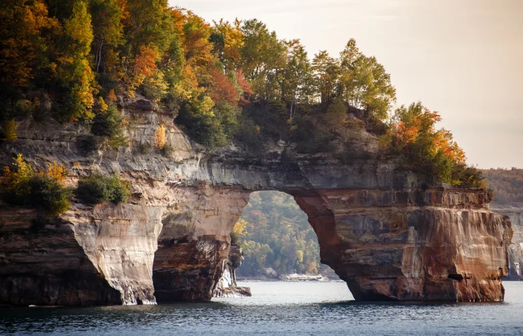 On the southern shore of Lake Superior in Michigan’s Upper Peninsula, you’ll find Pictured Rocks National Lakeshore. These colorful sandstone cliffs rise dramatically above the blue-green waters, forming one of the most photogenic shorelines in the Midwest.