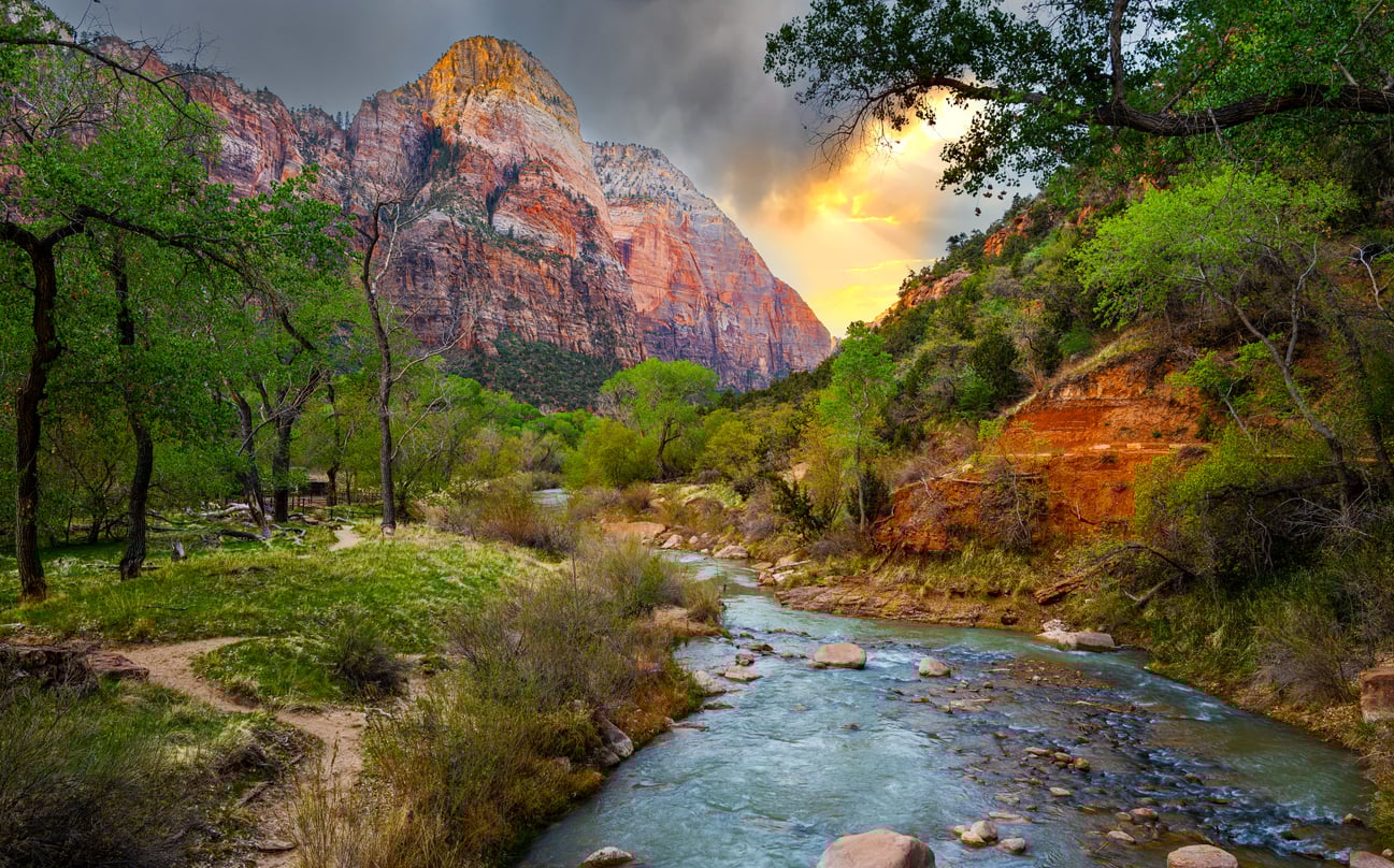 Zion National Park, with its towering sandstone cliffs and emerald-green Virgin River, is a bucket-list destination for RV travelers. Located in southwestern Utah, this 229-square-mile park offers a striking landscape of red rock canyons, lush oases, and trails that cater to active seniors. Its accessibility, combined with a variety of low- and moderate-intensity activities, makes Zion a standout choice.